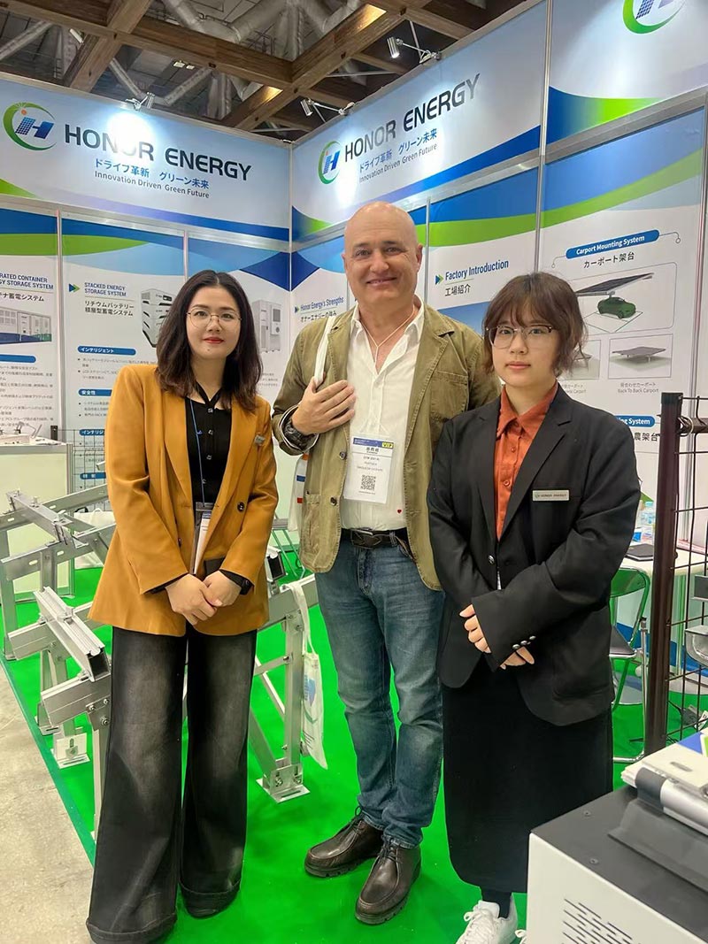 एक अग्रणी फोटोवोल्टिक माउंटिंग सिस्टम प्रदर्शक के रूप में, ऑनर एनर्जी ने जापानी बाजार में वर्षों के प्रोजेक्ट अनुभव के आधार पर ग्राउंड माउंटिंग सिस्टम (कार्बन स्टील और एल्यूमीनियम), कारपोर्ट माउंटिंग सिस्टम, रूफटॉप माउंटिंग सिस्टम, फार्मलैंड माउंटिंग सिस्टम, बाड़, ऊर्जा भंडारण सिस्टम, क्लैंप और अन्य सहायक उपकरण की अपनी विविध रेंज का प्रदर्शन किया।